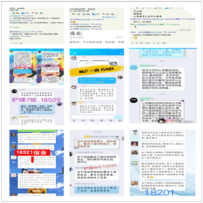 为确保此次“云”团辅活动有序开展,护理学院学工办在学院党总支的指导下,多次与大学生心理中心商讨主体内容、研究活动细节,不断完善活动方案。通过此次“云”团辅活动,学生们纷纷感慨:“第一次看到了自己身上的闪光点”、“切身感受到了自己的价值”“身心得到放松,重新拾回了自信”、“宿舍的氛围越发融洽活跃”。