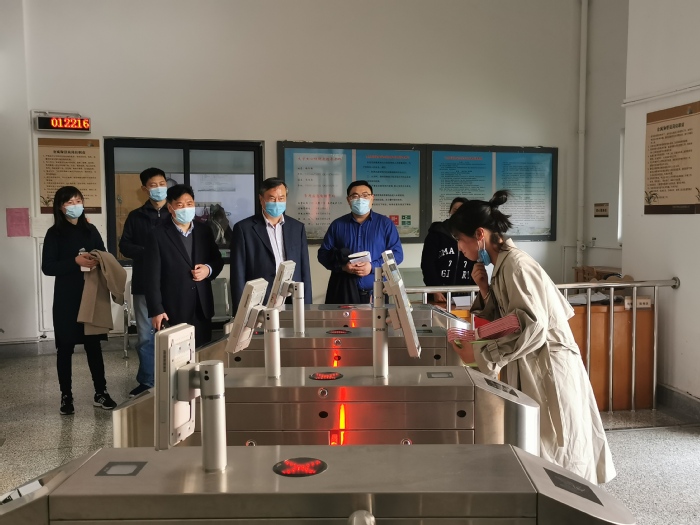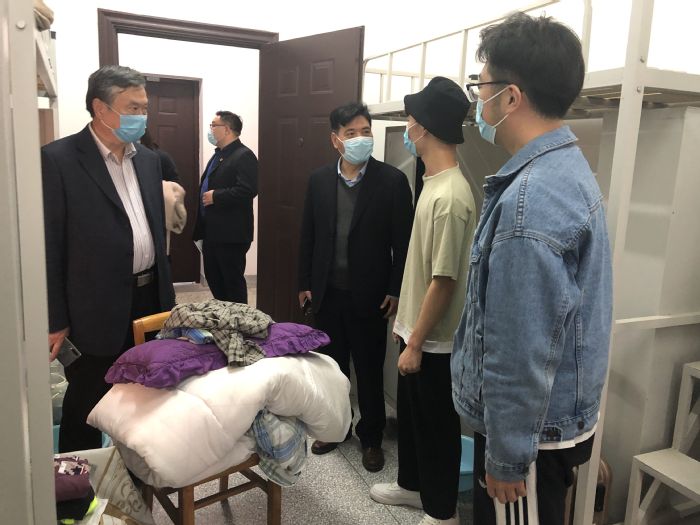 王院长一行首先查看了宿舍门禁刷脸系统的使用情况,确保进出隔离点人员要有出入记录。进入隔离宿舍内,王院长与返校学生亲切交谈,详细了解他们的生活与学习情况,并叮嘱他们要注意个人健康防护,合理安排好生活与学习。在集中观察隔离点,侍院长详细了解了防疫物资供给、医疗保障、后勤服务等方面的落实情况。
