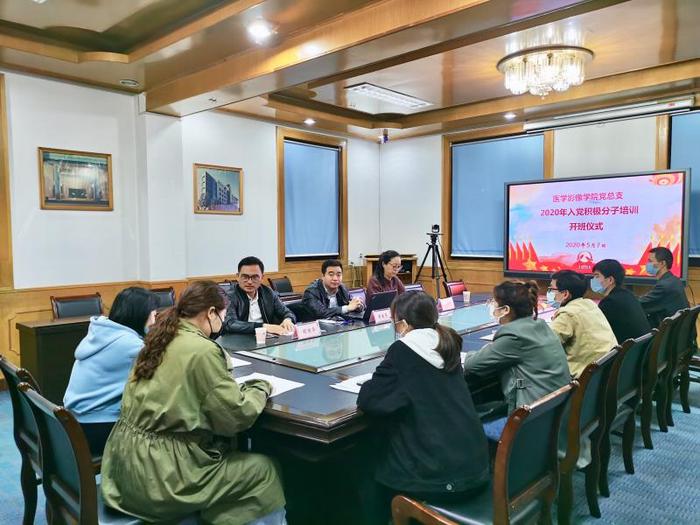 为学习贯彻习近平新时代中国特色社会主义思想和党的十九大精神,不断提高入党积极分子的思想政治素质和政治理论水平,进一步提高入党积极分子对党的认识,明确入党目的,端正入党动机,坚定理想信念,树牢“四个意识”,增强“四个自信”,为光荣加入党组织奠定坚实思想基础。根据《中国共产党发展党员工作细则》,按照学校党委组织部入党积极分子培训工作总体部署和学院工作安排,医学影像学院党总支于5月7日晚19:00在建军校区行政楼会议室举办2020年入党积极分子培训班开班仪式暨开班第一讲,校党委组织部副部长、统战部副部长、机关党总支副书记袁金勇,医学影像学院党总支书记胡国华,医学影像学院党总支第一党支部书记张益兰以及2018级所有入党积极分子通过线上、线下的方式参加了此次开班仪式暨开班第一讲。开班仪式由张益兰老师主持。