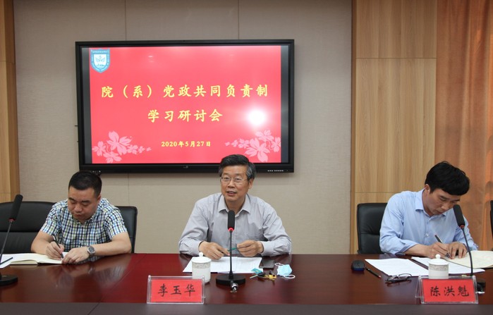 5月27日下午,我校在学术会议中心第五会议室召开院系党政共同负责制学习研讨会。各二级学院(部)以及党委组织部全体中层干部参加会议。会议由党委副书记李玉华主持。