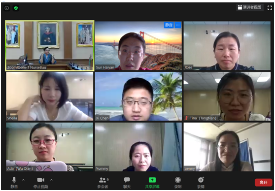 由于受新冠肺炎疫情的影响,护理学院在泰国东方大学的博士项目学习采用了视频会议的方式进行。6月4日上午,泰国东方大学的博士项目负责人Dr. Aporn主持召开了QE考试前准备的线上学习讨论。每位同学针对自己研究的问题与老师展开了激烈的讨论,老师及时提出具体意见和处理方法。护理学院博士项目利用网络平台实现了“停课不停学”,不仅拉近了教师与学生的距离,更易于在读博士们利用现代信息技术及时对所学知识进行巩固复习,激发学生运用解决实践问题的思考能力和学习兴趣。