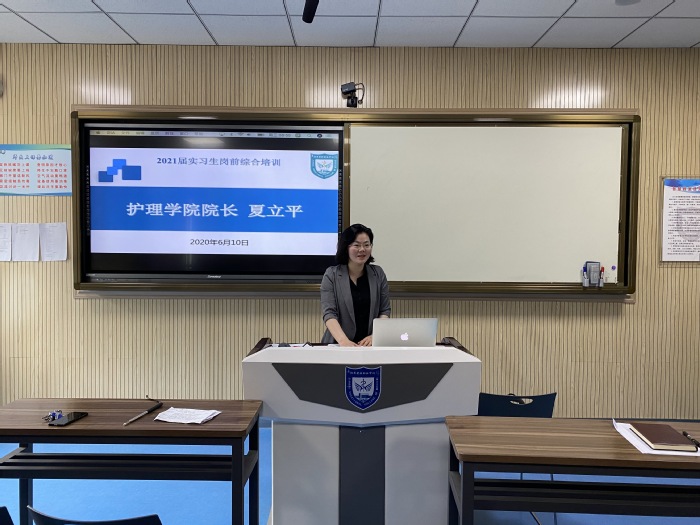 6月10日,护理学院在解放校区A206教室举行了2018级实习生岗前综合培训会。本次培训会主题为“践行初心,勇担职责”,因受新冠肺炎疫情影响,培训会利用学校智慧校园平台全程采用“云”培训,护理学院2018级754名实习生参加培训。