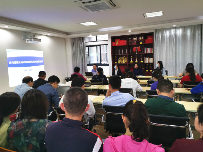 吴处长详细解读了江苏省及学校最新的横向课题及科研成果转化政策,结合实际工作介绍了横向课题界定、横向课题相关管理规定、成果转化界定、成果转化相关管理规定及注意事项,并解答了部分老师的问题,分享了科技成果转化工作的思考和经验。吴处长表示科技处将继续做好服务,加强和老师们的交流,了解老师们的需求,发现成果转化过程中的问题,不断修正,精益求精,推动我校科技成果转化工作更加规范、更加高效。