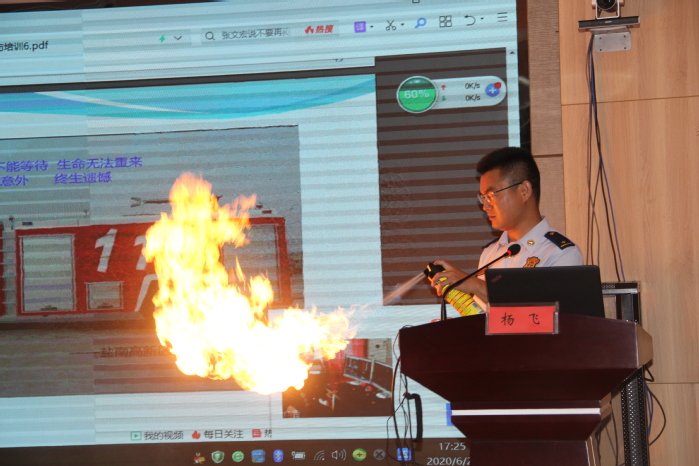 会上,杨参谋为大家讲述了学校火灾案例、学校消防安全常识、火灾逃生和自救方法、学校消防安全管理、灭火器的使用方法等内容。在讲座的最后阶段,杨参谋还和大家展开互动,利用灭蚊喷雾、灭蚊拍和车载香水等容易引发火灾的物品,亲身示范火灾危害。整个讲座期间,杨参谋讲解示范详细,教职工们积极认真。
