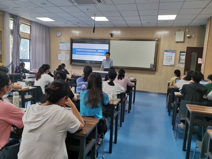 护理学院党总支副书记、副院长王俊峰说明毕业前学生管理要求