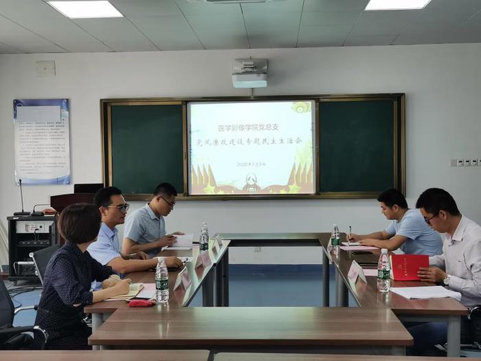7月8日下午,医学影像学院党总支在解放校区B406会议室召开了以“党风廉政建设”为主题的民主生活会,对照全面从严治党要求,结合2020年度党风廉政建设责任制落实情况,认真排查思想认识、责任落实、作风建设等方面存在的突出问题,深入进行党性分析,严肃开展批评和自我批评,推动全面从严治党向纵深发展。学院党政班子成员参加了会议,校执纪审查室处长叶宁到会指导。会议由医学影像学院党总支书记胡国华主持。