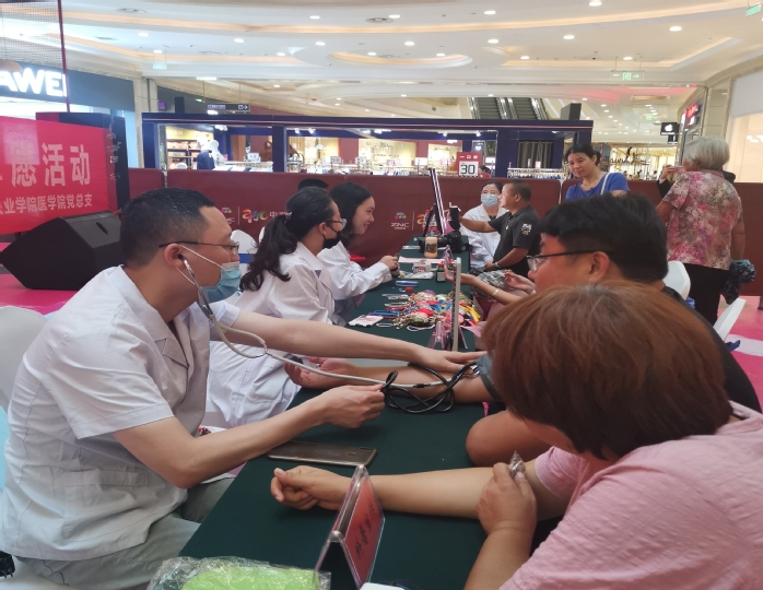为进一步弘扬“敬佑生命、救死扶伤、甘于奉献、大爱无疆”的医师职业精神,8月19日,医学院党总支以庆祝第三个“中国医师节”为契机,在中南城购物中心开展“弘扬抗疫精神 护佑人民健康”志愿服务暨庆祝第三个中国医师节义诊活动,医学院党政班子及相关专业党员教师参加了本次活动。