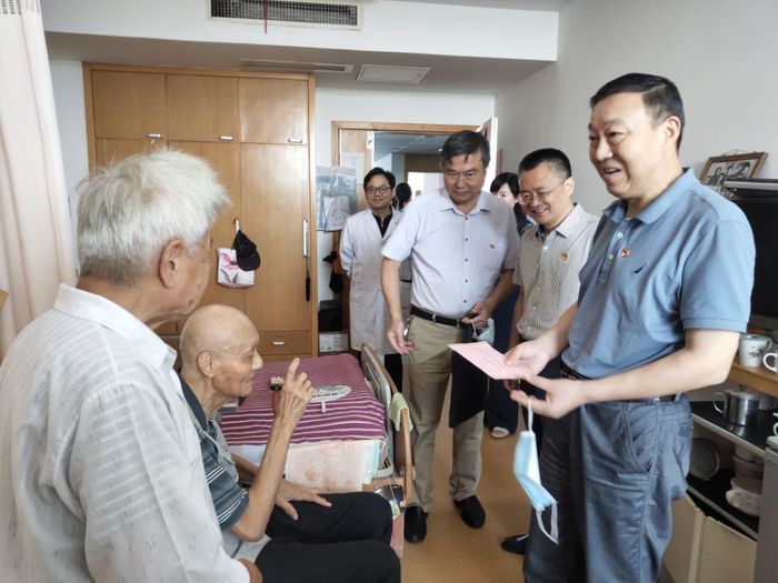 在医院老干部病房,校领导与老同志们亲切交谈,转达了党中央对老同志的关怀和问候,详细了解老同志们的健康状况、饮食起居和家庭情况并送上慰问金,为他们向党和国家事业以及学校发展作出的积极贡献表示衷心的感谢并致以崇高的敬意。
