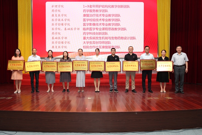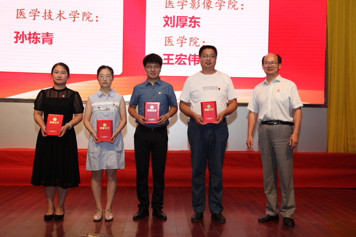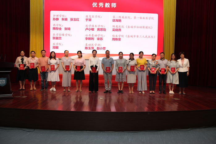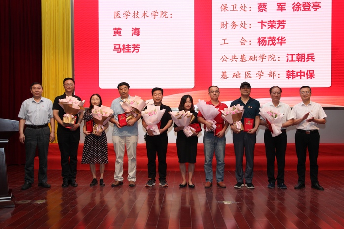 会上,校领导分别为获得优秀辅导员”“优秀教师”“优秀教育工作者”“优秀临床教师”“最美教师”“教学名师”“师德标兵”“优秀团队”的集体和个人,以及教龄达25年的教师、工龄达30年的职工颁发了奖牌和荣誉证书。第五届“教学名师”魏志明老师作为优秀教师代表作了交流发言,分享了从教十三年来教书育人、教学科研的心得体会。