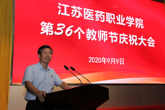 院长陈国忠在大会上致辞,向全校教职工致以节日的问候,向受到表彰的老师们表示热烈的祝贺。他指出,教师是教育发展的第一资源,是立教之本和兴教之源。“立德树人奋进担当,教育脱贫托举希望”是今年教师节主题,也是每一位教师的职责与使命。陈院长强调,今年开展的首届“最美教师”评选活动鼓励广大教师发现先进、学习先进、成为先进。他分别从美的品德、美的课堂、美的形象三个方面,对如何成为新时代的苏医“最美教师”作出了深入阐释。