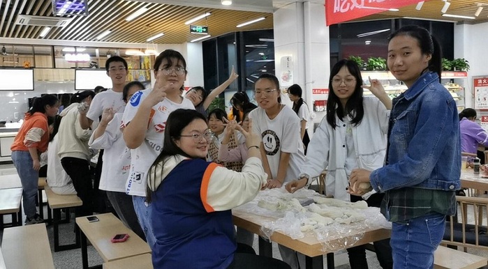 9月28日,医学院组织同学们观看了秋日的第一场集体电影《当幸福来敲门》,开启了医学院双节电影周活动;9月30日晚,个别班级组织同学们在操场k歌、跳广场舞;10月1日,学院迎来了活动高峰期:王宏伟老师组织2019级临床医学9班同学在食堂包饺子,张栋梁老师带领2019级临床医学3+2班同学一起玩游戏、看电影,崔竞妍老师连夜制作蛋糕胚和2019级临床医学7班同学一起制作精美蛋糕,刘坪楚老师和2019级临床医学2班同学们一起举办双节联欢晚会和制作月饼等活动。专兼职辅导员与学生围坐一起,灿烂的笑容为今年的初秋增添了满满的幸福,校园内处处洋溢着温馨欢乐的节日氛围。