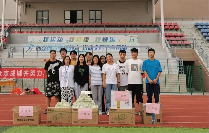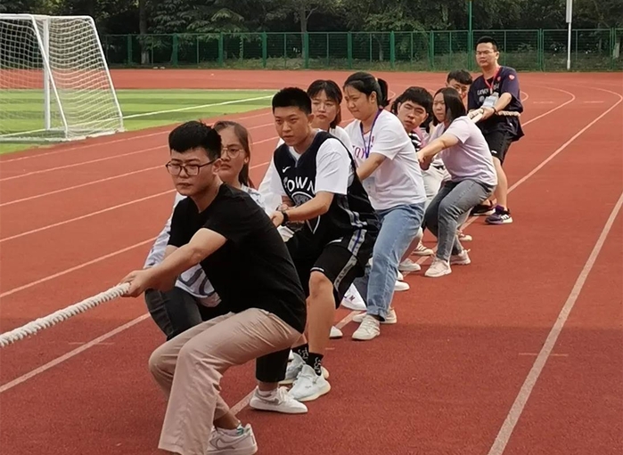 趣味运动会以团体赛的方式进行,项目内容突出了“趣味”与“协作”的主题,共设有拔河、趣味三项、过河比赛、十人九足跑等项目。比赛通过晋级和抽签的方式进行,各班以小组为单位参加比赛。赛场上,各参赛队伍协同合作,尽情地挥洒汗水;场下的同学欢呼呐喊,为同学加油打气。欢呼声、掌声、呐喊助威声此起彼伏。在参赛队伍、裁判员和工作人员的共同努力下,经过近两个小时紧张激烈的角逐,趣味运动会圆满结束,按照最终积分决出了一等奖1个、二等奖4个、三等奖3个和优秀奖2个。