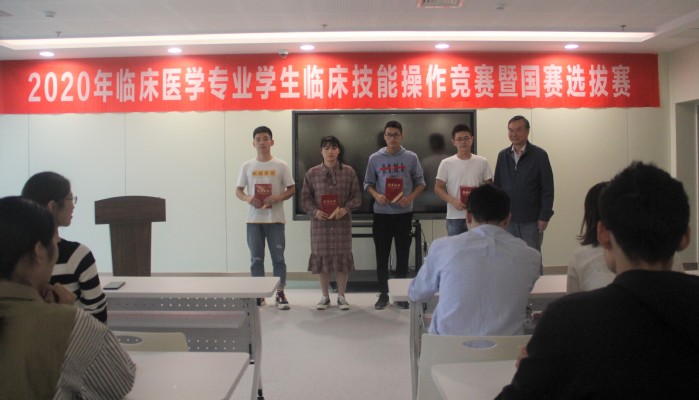 经过角逐,现场最终评出一等奖4名、二等奖8名、三等奖12名。侍院长为获奖选手颁发了证书,并亲切询问同学们在临床学院的学习情况,叮嘱同学们继续注意疫情防控,同时对他们取得的成绩表示祝贺。
