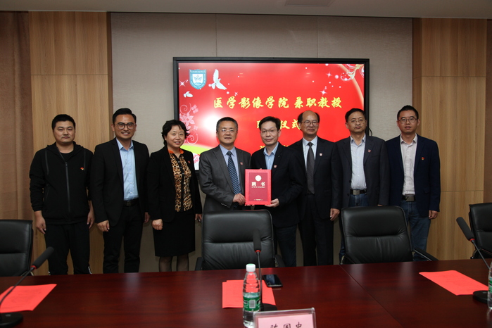 10月15日下午,我校在学术会议中心第五会议室举行医学影像学院兼职教授聘任仪式,聘请南京中西医结合医院放射科主任唐晨虎为我校医学影像学院兼职教授。院长陈国忠、纪委书记徐伯静,相关部门负责人参加了仪式。会议由纪委书记徐伯静主持。