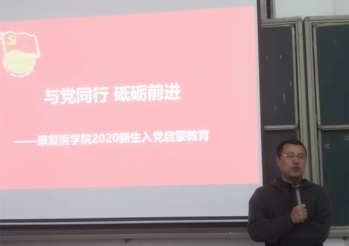 会上,康复医学院党总支书记赵亮紧紧围绕“与党同行、砥砺前进”主题引导同学们听党话、跟党走,把自己的个人理想与中国梦紧密结合,与祖国同频共振,积极向党组织靠拢。