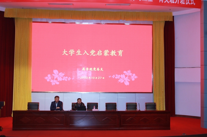 为切实做好2020级新生入党教育工作,帮助新生增强对党的认识,端正入党动机,积极向党组织靠拢,10月27日,药学院党总支在国际会议交流中心开展大学生入党启蒙教育,邀请党委组织部副部长袁金勇为2020级全体师生及入党积极分子作题为《永远跟党走,争做新时代的优秀青年》的专题讲座。讲座由药学院党总支书记王晨军主持。