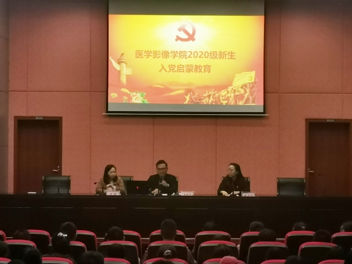 为了提升新生对党的认识,激发政治热情,提升思想觉悟,引导学生积极向党组织靠拢,10月28日下午,医学影像学院党总支在学术报告厅召开2020级新生入党启蒙教育会,医学影像学院党总支书记胡国华、学院全体专兼职辅导员和2020级全体团员参加会议。会议由医学影像学院党总支宣传委员张益兰主持。