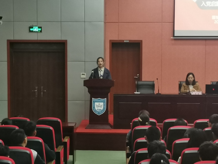 随后,医学影像学院党总支组织委员吴君老师向同学们介绍了入党事宜,引导大家明确入党目的、积极提出入党申请、为党的建设贡献出自己的一份力量。