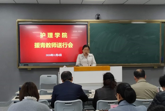 为积极响应省教育厅对口支援青海省海南州职业教育通知精神,我校护理学院卞龙艳和朱慧两位老师将赴海南州职业技术学校开展为期1年的支教工作。11月4日下午,护理学院在教学楼A204教室举行了援青教师送行会。校纪委书记徐伯静出席会议,教务处处长王庭之、人力资源处处长陈钧、工会主席龙芳及护理学院全体教师参加了会议。会议由护理学院院长夏立平主持。
