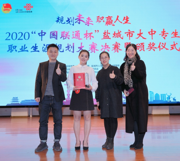11月5日下午,2020“中国联通杯”盐城市大中专生职业生涯规划决赛在盐城幼儿师范高等专科学校举行,本次比赛由 VCR 展示、主题陈述、才艺展示、现场答辩四部分组成。在十分钟时间里,张俊雅同学表现自信大方、思路清晰,结合今年新冠疫情详细阐述了她的职业生涯目标:做基层百姓的健康守门人,博得了现场观众的热烈掌声,最终以全市总分第一名的好成绩获得了盐城市大中专生职业生涯规划大赛“杰出生涯规划之星”。