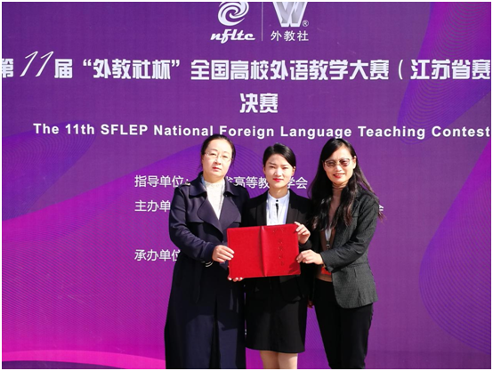 11月6日至8日,第十一届“外教社杯”全国高校外语教学大赛(江苏省赛区)决赛在扬州职业大学成功举办,本次大赛由江苏省高等教育学会指导,江苏省高等学校外国语教学研究会、上海外语教育出版社和江苏省高校青年外语教师培训基地主办。我校公共基础学院王导、胡良玉和李正亚3位老师组成的教学团队荣获江苏省赛区(高职组)一等奖。