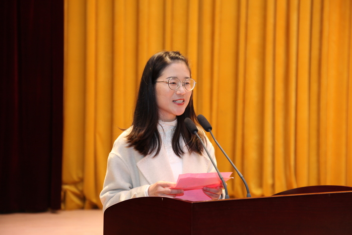 2017级药学2班的辅导员谢文娜代表先进集体作了发言,她表示要带着“用心、尽心、信心、爱心”陪伴学生,争做一个有温度的学工人,用爱和行动诠释辅导员立德树人的职责使命;国奖奖学金获得者2018级医学检验技术1班胥姝雯同学作为优秀学生代表发言,她通过个人经历告诉大家拼搏精神和勤奋耕耘的重要性,同时,她将把荣誉化成未来前进的动力,秉承校训,砥砺前行。