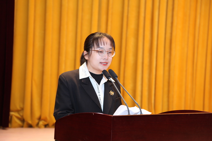 国奖奖学金获得者、2018级医学检验技术1班胥姝雯同学作为优秀学生代表发言