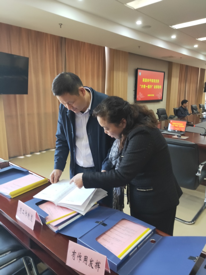 检查组查看了相关档案材料,对照《全省离退休干部党支部“六有一提升”达标及评分标准》核实加减分项目,就党支部党建工作的日常开展情况与大家进行了交流与讨论。张雷副处长强调,要坚持以习近平新时代中国特色社会主义思想为指引,通过实施“六有一提升”工程,全面推进离退休干部党的政治、思想、组织、作风和纪律建设,不断提升离退休干部党组织的政治功能和组织力。要把离退休党支部建设成为贯彻党的决定、团结凝聚离退休干部党员的重要阵地,成为组织引导离退休干部发挥独特优势、增添正能量的战斗堡垒。