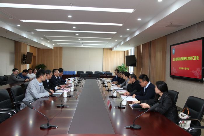 11月19日下午,以江苏海洋大学副校长李梅英为组长的省高校后勤安全工作检查组一行7人莅临我校,全面检查评估我校后勤安全工作。后勤安全工作汇报会在学术会议中心第五会议室举行。院长陈国忠,副院长王辉、侍杏华及保卫处、后勤处等部门负责同志参加了会议。会议由副院长侍杏华主持。