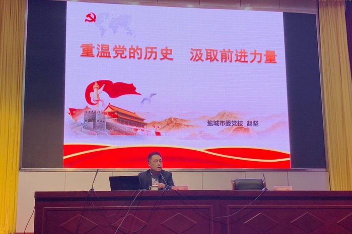 为深入学习贯彻习近平总书记关于加强党史、新中国史、改革开放史、社会主义发展史学习的重要讲话精神,进一步增强师生守初心、担使命的思想自觉和行动自觉,激发青年学子爱党爱国荣校热情,11月20日下午,医学技术学院党总支在国际会议中心开展“以史为鉴守初心、坚定信念跟党走”主题教育活动,盐城市委党校科研处处长赵坚教授应邀出席活动,总支全体党员和学生代表参加活动。