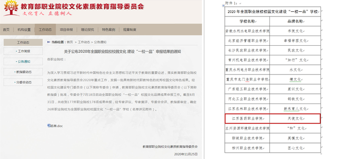 11月25日,教育部职业院校文化素质教育指导委员会公布2020年全国职业院校校园文化建设“一校一品”学校名单,我校“天使文化”校园文化品牌成功获选,成为全国获选的26所职业院校之一。