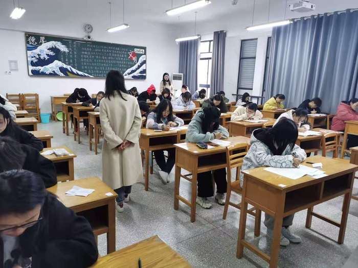 自10月23日启动报名后,我校共有1502名学生报名参加竞赛。11月10日,学校通过云课堂组织第一轮模拟测试,共遴选出1005名学生参加初赛即闭卷笔试,笔试共34个考场,按标准考场设置,每个考场安排30名学生,配备2名监考老师。