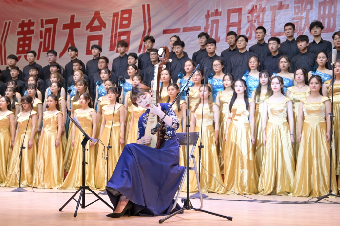 盐城师范学院带来的《黄河大合唱》是冼星海最重要的也是影响力最大的一部大型合唱声乐套曲。这首以黄河为背景而创作的作品热情歌颂了中华民族源远流长的光荣历史,对于当代大学生有着深刻的历史及教育意义。盐城师范学院的师生通过倾情演绎将学生们的思绪带回到七十多年前,通过他们的歌声仿佛看到了侵略者的残暴与抗日战争的壮烈,感受到了当时的人民所遭受的灾难和中国人民坚强不屈的斗争精神。