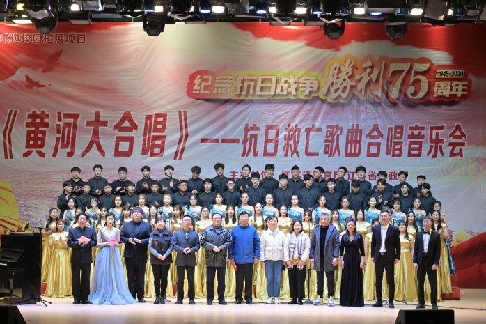 12月1日,由江苏省教育厅、财政厅主办,盐城师范学院与我校共同承办的“2020年高雅艺术进校园活动拓展项目”纪念抗日战争胜利75周年《黄河大合唱》——抗日救亡歌曲合唱音乐会在我校大学生艺术中心顺利举办。原盐城市人大常委会秘书长、二级巡视员徐国均,盐城市音乐家协会合唱联盟主席、盐城师范学院艺术教育中心副主任卢晓进,盐城市亭湖区民盟总支主委熊存良,盐城市音乐家协会合唱联盟秘书长邵芸,我校学工处副处长许凤、宣传部副部长马冬云及团委负责同志参加了活动。