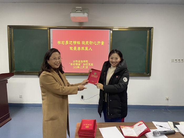 公共基础学院党总支书记王英姿表示,开展此次活动的目的就是要抓实抓好党员学习教育,对认真开展理论学习的党员同志嘉奖激励,号召大家向身边的榜样学习,凝聚立德树人初心力量,引导广大教师挖掘中外文化中的优秀人文资源,积极推动人文教育与专业教育相融合。大家作为一名党员教师,既是先进文化的者,更是红色基因的传承者,三种角色要贯穿教育始终,渗透教育教学各环节,为党和国家培养好合格的社会主义建设者和接班人。(公共基础学院商徽供稿、黄文明摄影,姚慧核稿)