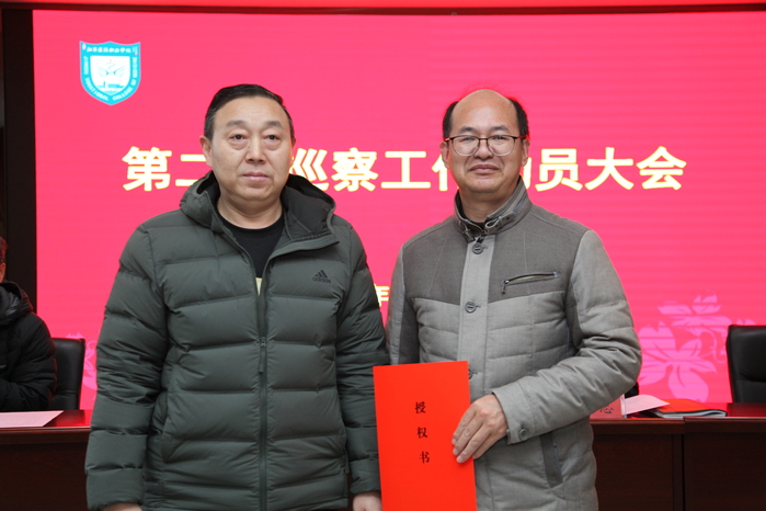 党委书记、巡察工作领导小组组长郝达富为第二巡察组组长颁发授权书