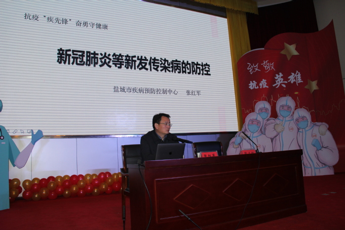 张红军主任首先回顾了抗疫战斗的艰辛历程,展现了一名疾病预防控制工作者,一名共产党员,在大灾大难面前舍我其谁的英雄本色;接着,张红军主任倾囊相授,从新发传染病的特点、新冠肺炎的防控、疫苗群体免疫的挑战三个方面,以盐城地区疾病预防控制工作为侧重点,旁征博引,深入浅出地普及了现阶段各类疫苗知识,分析了当前新冠疫情的发展态势,展现了我国疫情防控工作取得的丰硕成果;在活动的最后,张红军主任更是殷切期盼所有预防医学学生在校期间能够学好医学理论基础,提高沟通、语言表达能力,培养团结协作、吃苦耐劳精神,提升逻辑思维和学习能力,注重观察,善于总结,为成为一名合格的疾病预防控制工作者而不断砥砺前行!