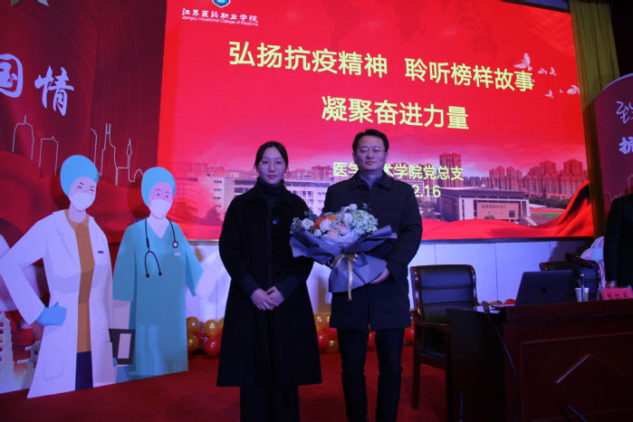 为坚定党员理想信念,培养青年学子勇于担当的品质,12月16日下午,医学技术学院党总支邀请“全国抗击新冠疫情先进个人”、盐城市疾病预防控制中心党委委员、副主任,主任医师张红军,在国际会议中心开展“弘扬抗疫精神 聆听榜样故事 凝聚奋进力量”主题教育活动。学校副院长王辉以普通党员身份出席活动,医学技术学院全体党员、2019级学生入党积极分子及预防医学专业全体在校生参加活动。活动由医学技术学院党总支书记殷卫红主持。