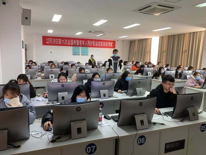 12月19日,失智老年人照护职业技能等级(中级)证书考试在我校举行。本次考评由教育部第二批职业教育培训评价组织——北京中民福祉教育科技有限责任公司组织,康复医学院190余名学生参加了考试。