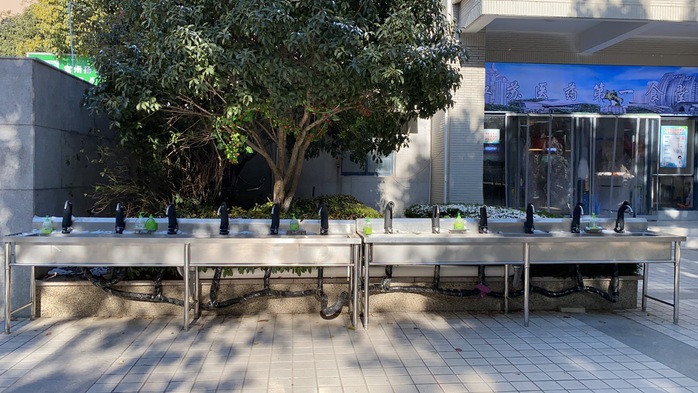 针对严寒雨雪天气,后勤人员提前开展校园防寒防冻巡查,主要对供水、供电和门窗设施进行检查检修,12月28日,工作人员重点给室外裸露水管、水表、水龙头、阀门等包裹保温材料来防冻保暖;针对校园里的一些不耐寒树木的树干已经全部用薄膜和布料包裹起来,有效减少冰冻天气带来的伤害。
