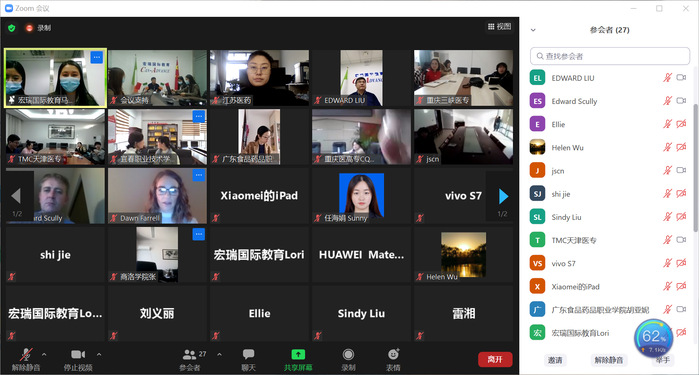 为进一步推动爱尔兰专硕项目,更好地为护理学院学生搭建国际交流与合作平台,1月13日下午,护理学院副院长郭玲玲参加爱尔兰垂利理工学院护理专(本)升硕项目合作院校线上交流会,爱尔兰垂利理工学院护理学院院长Dr.Dawn Farrell、国际学院院长Eddie Scully 、护理专(本)升硕项目负责人Cyril Gavaghan以及来自全国12家高等职业院校30多位领导和老师参加会议。