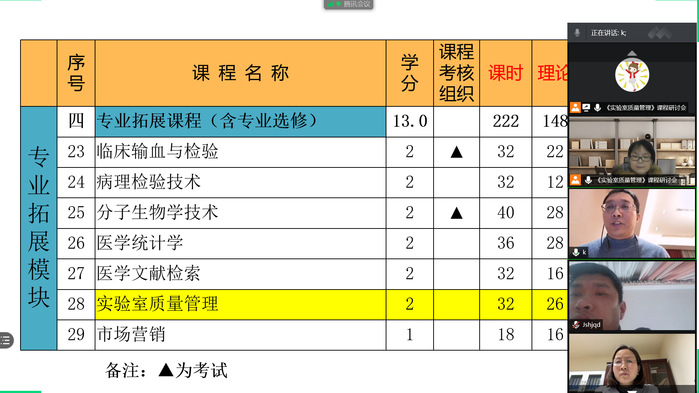 为不断提高临床学院教学和管理水平,保证人才培养质量,确保临床教学的同质化,2月21日至2月22日,医学技术学院利用腾讯会议平台组织组织医学检验技术专业4家临床学院全体兼职教师及相关管理人员等50余人开展线上集体备课。