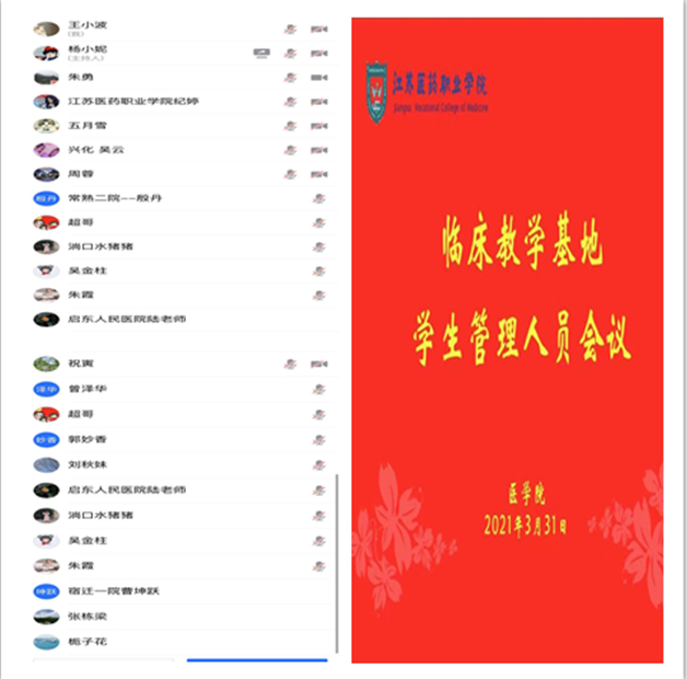 3月31日晚,医学院通过腾讯会议召开临床教学基地学生管理人员会议,学工处处长徐成,医学院党总支书记周文超、副院长黄诚,校心理健康中心主任范芃及2018、2019级校内外专兼职辅导员参加会议。会议由医学院党总支副书记杨婷主持。