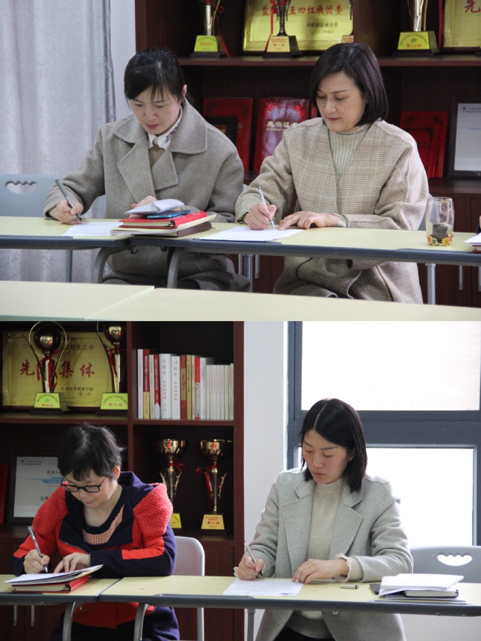 随后,殷书记、俞院长与各部门、教研室负责人签订《安全稳定工作目标责任状》。