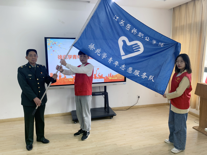 自党史学习教育开展以来,药学院青年学生志愿者也积极行动起来,把党史学习教育与志愿服务相结合,努力承担起青春使命。4月12日上午,药学院徐兆学青年志愿服务队举行“学悟党史明初心,志愿服务展风采”志愿服务活动暨青年志愿者服务队授旗仪式,我校校友“中国好人”徐兆学、社团指导老师及20名学生志愿者代表参加活动。