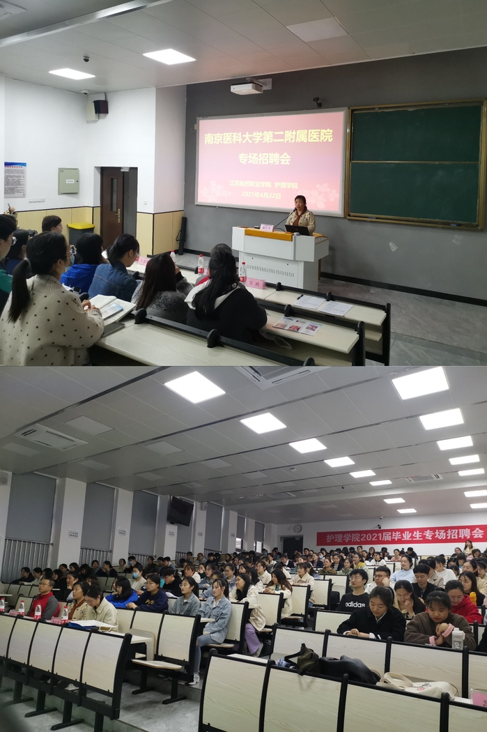 为进一步做好新形势下2021届毕业生就业工作,实现毕业生精准就业、充分就业、高质量就业,4月22日下午,护理学院特邀南京医科大学第二附属医院、阜宁县人民医院分别在A111、A401教室举办了专场招聘会,护理学院党总支书记何曙芝全程接待并主持了此次招聘会。