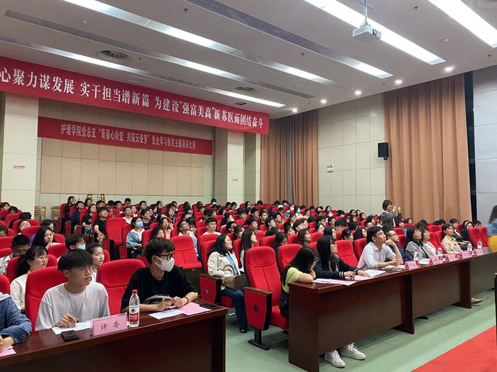 为庆祝中国共产党百年华诞,加强学生爱党爱国教育,培育和践行社会主义核心价值观,传承铁军精神、弘扬天使文化,5月9日晚,护理学院党总支在学术报告厅举办“青春心向党,共筑天使梦”主题演讲比赛。比赛邀请学工处处长徐成、党委宣传部副部长马冬云现场指导,并担任评委。护理学院党总支书记何曙芝、副书记王俊峰,总支全体委员、2020级全体专兼职辅导员及学生代表参加活动。