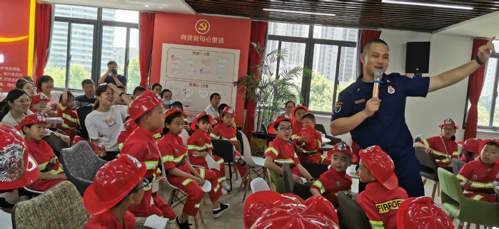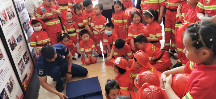 活动伊始,消防宣传员根据小朋友的年龄特点、认知水平和成长需要,采用幽默诙谐、通俗易懂的语言为小朋友讲解了预防火灾发生的重要性和火灾逃生方法、如何拨打“119”电话报警等消防安全常识,并介绍了灭火器等消防装备的用途和使用方法,与孩子们交流互动,让他们牢记所学的消防知识。