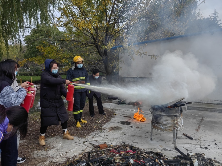 在室外培训环节,大队领导和教员们结合近年来发生在我们身边的案例,向老师和同学们讲解高校火灾防控重点及消防器材及使用方法、初起火灾扑救与报警、火灾疏散逃生等内容。现场组织每位人员进行了灭火器的实际演练,通过讲、练相结合的方式让大家掌握灭火操作技能和消防器材的正确使用方法。