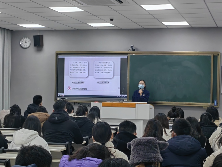 为了提高新进教师和学生干部的消防安全意识,营造校园良好的消防安全环境,根据学校2022年消防宣传月活动方案安排,11月30日下午,保卫处特邀盐南消防大队一级宣讲员陈瀚君教官对我校2022年新进教师和新生班级班长进行了消防安全知识教育和演练。活动由保卫处宣传科科长孙璟主持。